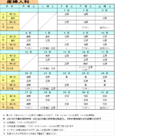 産婦人科外来10月分の診療体制は下表のとおりです。