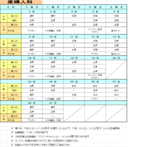3. 産婦人科外来3月分診療体制